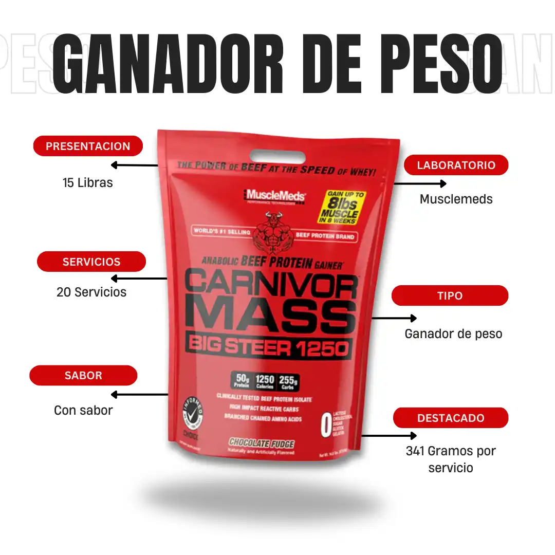 CARNIVOR MASS BIG STEER 1250 es más avanzado que el ganador de masa típico. La clave para una dieta de construcción masiva es poder consumir muchas calorías y suficientes proteínas para apoyar el crecimiento muscular y el aumento de la masa. Donde los alimentos regulares y los ganadores típicos pueden estar limitados en términos de digestibilidad y velocidad de absorción, CARNIVOR MASS BIG STEER 1250 sobresale. Este avanzado ganador de masa combina el aislado de proteína de res hidrolizado (BPI) clínicamente probado con carbohidratos micronizados de fácil digestión y una tecnología de amplificación de señal de insulina de doble acción conocida como iSpike. La combinación de BPI, carbohidratos de acción rápida y iSpike actúan en conjunto para desencadenar y anabolismo estado para ayudar a construir y reparar el músculo. CARNIVOR MASS BIG STEER 1250 es un ganador rápido, limpio y altamente anabólico que es ideal para ganadores duros que luchan para empacar en masa muscular.