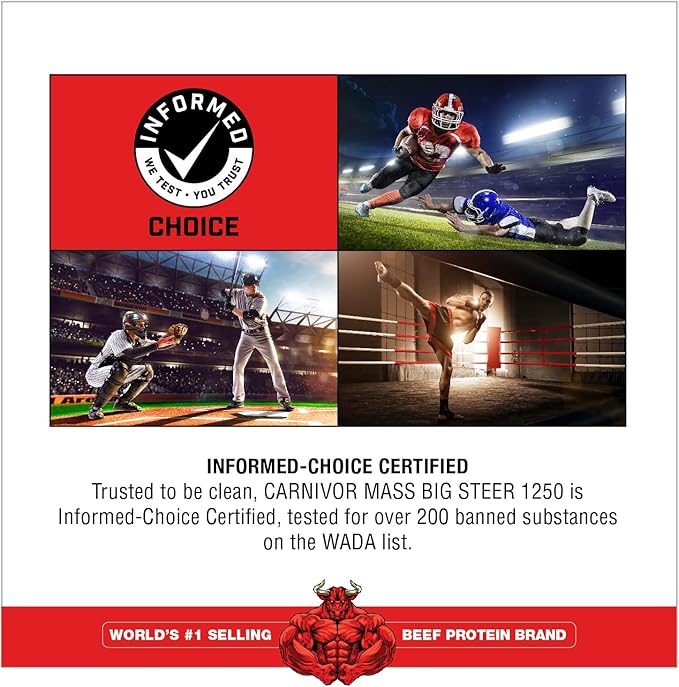 Con CARNIVOR MASS BIG STEER 1250, obtiene los beneficios de construcción masiva de la proteína de res pura a la velocidad del suero de leche, sin la lactosa, las alergias y otros problemas potencialmente asociados con el uso de productos lácteos. Para empacar en losas de masa, necesita CARNIVOR MASS BIG STEER 1250!