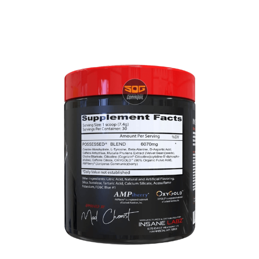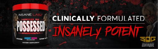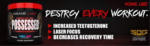 - Insane Labz Possessed es uno de los pre-entrenamientos más exclusivos del mercado. Con una dosis completa de creatina para aumentar la fuerza y la resistencia junto con Mucuna Pruriens y ácido D-aspártico para aumentar los niveles de testosterona que ayudan a desarrollar masa muscular y fuerza, Possessed marca todas las casillas que no sabías que necesitabas en un pre-entrenamiento .